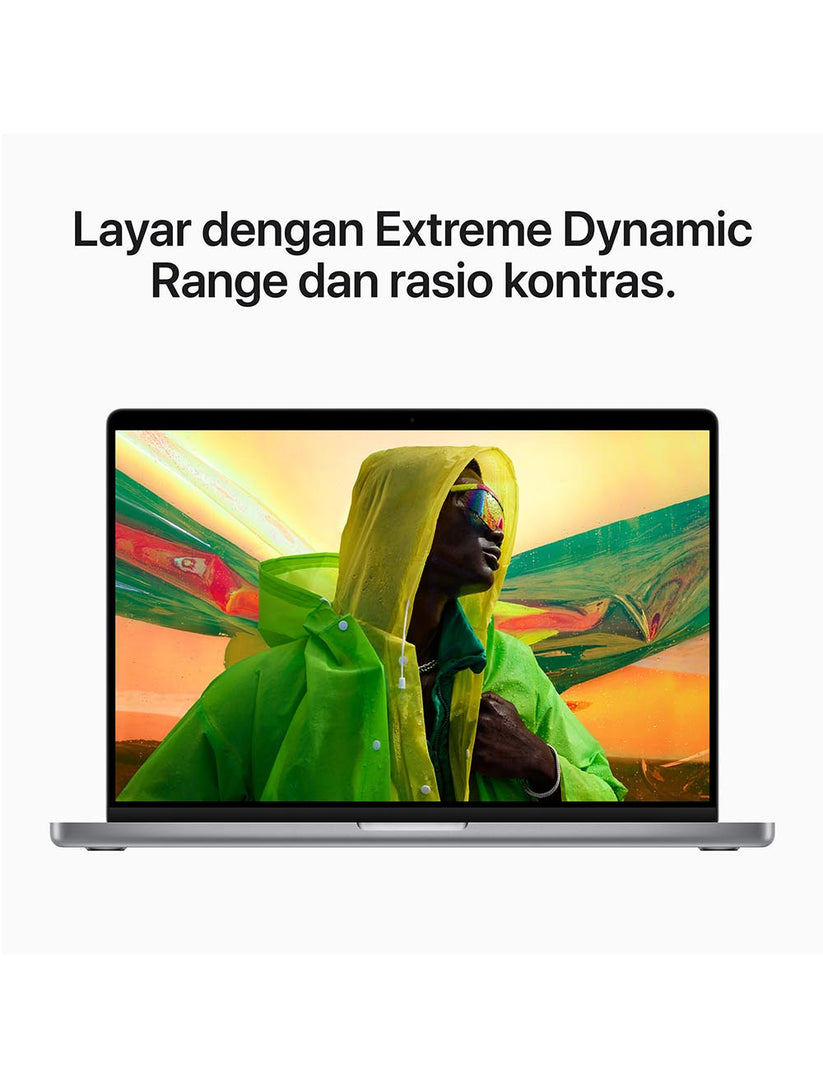 * Layar Liquid Retina XDR 14 inci yang menakjubkan dengan Extreme Dynamic Range dan rasio kontras